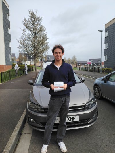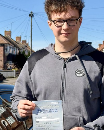 | Adrian's pupil was a little camera-shy, but had a great first-time pass! |